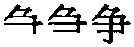 zhēnɡ表意,甲骨文象两只手夺取一物之形,小篆字形稍变,隶定为“爭”。本义表示争夺,引申为竞争、争执或争辩等,假借为代词,表示疑问,相当于“怎”“怎么”。俗字作“争”,大陆现以此为规范字形。 【辨析】 以“争”作音符构成的形声字读音不同。zhēnɡ:睁、筝、狰、峥、铮∣zhènɡ:挣、诤∣jìnɡ:净。争 爭; 甲 篆 隶zhēng【析形】会意字。甲骨文、小篆字形上为爪(手),下为又(手),中间表示某一物体,像两人争一样东西。隶、楷字形作“爭”,又写作“争”。现以“争”为正字。 【释义】《说文》:“引也。”本义是争夺、争抢。由争夺引申为竞争、比。又由具体的争夺引申指是非的争辩,即争执。[争先恐后]争着向前,唯恐落后。[明争暗斗]明里暗里都在互相争斗。多形容尽力争权夺利。 【shape analysis】It is the associative character.In Oracle and Bronze Inscriptions the upper part is爪(zhǎo,hand)and the lower part is又(yòu,hand),while in the middle is something.The whole character seems that two persons are fighting for something. 【original meaning】Scrambling for or fighting for something. 争(1)〈动〉差。 《金》九一: 娘子人材无比的好,只~年纪大些。 《醒》二七: 善恶到头终有报,只~来早与来迟。 《聊·墙》三: 叫二弟听我言: 这里如同在那边,我合你何~这几顿饭? <方>今江苏徐州、河南南阳话有此义。 (2) 〈代〉疑问代词。怎;怎么。 《金》一百: 此这一去,不为身名离故土,~知此去少回程。 |