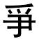 争《广韵》側進·諍;znì zneè〈漳〉‖zhèng争论;辩论(与“诤”同):两个咧相~lg é lēh siōznì(两个人在争辩) ❍ 伊明明呣着,也要共人死~yī bbíngbbíng dióh,yâ bbēhgâng lang sǐznì(他明明不对,也要跟人家强辩。)《庄子·齐物论》:“有分有辯,有競有争。”郭象注:“並逐曰競,對辯曰争。”成玄英疏:“並逐勝負,對辯是非也。”唐·韩愈《董府君墓志铭》:“董溪日伏階下與大尹争是非。” 争zēng <绥德> ❶欠:你还~我钱着叻,多乎儿(什么时候)还叻? ❷白白。副词: 瓜不甜你不要给钱,~吃去! 争爭ㄓㄥzhēng二2142①动欠,缺;差、短。⑴中原官话。江苏徐州〖 〗。他俩儿年龄~不多大。河南南阳:~别人多少钱?陈标诗《蜀葵》:「能共牡丹~几许,得人嫌处只缘多。」河南洛阳〖 〗。~他十块钱。河南郑州〖 〗、灵宝〖 〗、原阳〖 〗、信阳〖 〗、滑县、临汝、新安、兰考、南召、长垣、泌阳、鹿邑、洛宁、偃师、夏邑:~点儿。山东东明。山西芮城〖 〗、运城〖 〗、永济〖 〗。陕西商县张家塬〖 〗。我买了一件衣裳,还~几毛钱。陕西宝鸡〖 〗、户县〖 〗。~帐。陕西白河〖 〗、汉中〖 〗、延安〖 〗、西安〖 〗。⑵晋语。河南新乡〖 〗。我~他钱‖~他的钱还了没有?河南济源〖 〗、汤阴、博爱、延津、辉县、汲县、获嘉、武陟、焦作。河北邯郸〖 〗。陕西神木〖 〗、米脂〖 〗、绥德〖 〗、清涧〖 〗、延川〖 〗。山西岚县〖 〗。⑶西南官话。四川成都〖 〗。我跟他比,还~一截‖~点滚下水去。巴金《兄与弟》:「唐老五气冲冲地抢着分辩道:『我早就讲过,你~我钱不还,我才抱去押的。』」艾芜《南行记・流浪人》:「背盐的伕子不平地问我:『你到底还~他多少钱?』」李劼人《大波》第二部第七章:「~一点儿,你们就溜脱了。」四川汉源〖 〗、自贡〖 〗。~点儿。四川奉节〖 〗、南充〖 〗、邛崃〖 〗。~点儿摔了一交。云南澄江〖 〗、昭通〖 〗、昆明〖 〗、大理〖 〗。广西南宁〖 〗。唐杜荀鹤《自遣》:「百年身后一丘土,贫富高低~几多?」贵州贵阳〖 〗。~差。贵州桐梓、沿河〖 〗。我还~几天就满三十了‖他~点儿摔下桥去了。贵州赫章〖tsen55〗。和我比,你还要~点。⑷吴语。浙江温州〖 〗、平阳〖tsa44〗、青田〖 〗。⑸客话。四川西昌〖 〗。福建永定下洋〖 〗。~几多日差几天。广东梅县〖 〗。⑹粤语。广东广州〖 〗。佢~你两文他欠你两块钱‖重~啲乜乜嘢还缺些什么?广东阳江〖 〗。~三分钟到四点钟。⑺闽语。广东中山隆都〖 〗。◈ 《水浒传》第二四回:「~些儿差一点儿把妇人推一交。」又第四九回:「第二个好汉名唤邹润,是他侄儿,年纪与叔叔仿佛,二人~差不多。」《三遂平妖传》第十回:「若不是老师张先生救得我性命时,~些儿不与婆婆相见。」②动不付任何代价。晋语。陕西北部〖 〗。瓜不甜你~拿的去。③动张开(口袋)。⑴冀鲁官话。河北石家庄〖 〗。你给我~口袋,我来装。⑵西南官话。云南昆明〖 〗。~着口袋。云南曲靖〖 〗、昭通〖 〗、大理〖 〗、保山〖 〗、蒙自〖 〗、文山〖 〗、临沧〖 〗。④动勉强支撑。赣语。江西宜春〖 〗。病里还总~到。⑤动争斗。闽语。福建闽侯洋里〖 〗。⑥动偏袒、袒护;向着。粤语。广东广州〖 〗。我边个都唔~我谁也不偏袒‖~住佢向着他。⑦动书写条幅时,令人牵引条幅的一端以便书写。西南官话。云南昭通。姜亮夫《昭通方言疏证・释衣服》:「昭人谓…使学童牵引对联以便书写亦曰~。」⑧形猛勇厉害。中原官话。陕西中部。   争zhēng❶抢夺 △ ~权|~夺。 ❷较量 △ 斗~|战~。 ❸争吵;争论 △ ~执。 【注意】中间是“⺕”,不是“彐”。以“争”为偏旁的字有“挣、睁、筝、净、静”等。 争zhēng