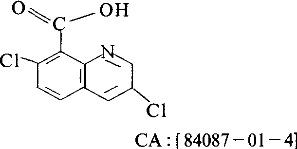 | 释义 | 二氯喹啉酸quinclorac稻田用选择性高效喹啉羧酸类除稗剂。商品名快杀稗、Facet、BAS-51400H。化学结构式: