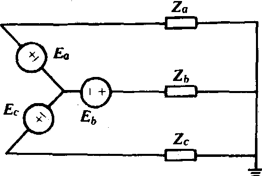地相的电压损失折算成线电压损失为△Udx=△Udd+△Uj≈△Udd。地相的电压损失一般小于架空相的电压损失,由此造成用户侧电压的不对称。 导线截面选择 一般按允许电压损失选择,以架空相电压损失不超过允许电压损失为控制条件。计算方法同普通三线三相制(见导体截面选择)。 短路电流计算 在短路后等值电路(图2和图3)图中Za=Zb=(r0+jx0)L。Za、Zb为架空相的阻抗,r0、x0、L为短路点到变电所间两线一地线路的长度(千米)。Zc为地相的阻抗,Zc=R+0.05L+jxel,R为变电所的接地电阻(欧);0.05欧/千米为大地的单位电阻。