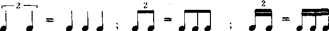 节奏划分的特殊形式。用同等时值的两个音符来代替同等时值的三个音符,便形成了二连音。记谱时在组成二连音的二个音符上方或下方用数字2来表示。如