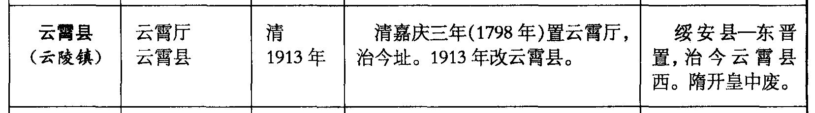 云霄县(云陵镇)云霄厅云霄县清1913年清嘉庆三年(1798年)置云霄厅,治今址。1913年改云霄县。绥安县—东晋置,治今云霄县西。隋开皇中废。