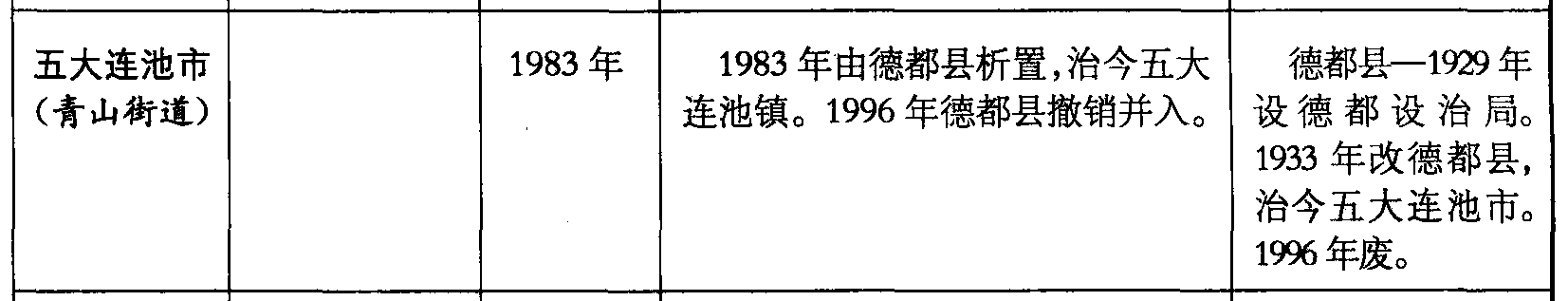 五大连池市(青山街道)1983年1983年由德都县析置,治今五大连池镇。1996年德都县撤销并入。德都县—1929年设德都设治局。1933年改德都县,治今五大连池市。1996年废。