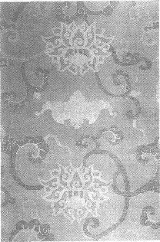 | 释义 | 五彩蝠莲妆天鹅绒 五彩蝠莲妆天鹅绒清。纵220厘米,横66厘米。江苏省南京博物院藏。天鹅绒,亦称“毛卷绒”,是一种绒底缎花或缎地绒花的丝织工艺品。经、纬丝都先经精练、染色,织造时用部分经丝在织物表面形成横向排列的紧密毛圈,然后根据花纹图案,将部分毛圈割断成为毛绒,由毛圈和毛绒构成花纹图案。此绒上织弯转生动的绿色缠枝,衬托出鲜红饱满的荷莲,一只金色蝙蝠展翅其间,构成一幅金彩夺目具有民间风格的福连图。