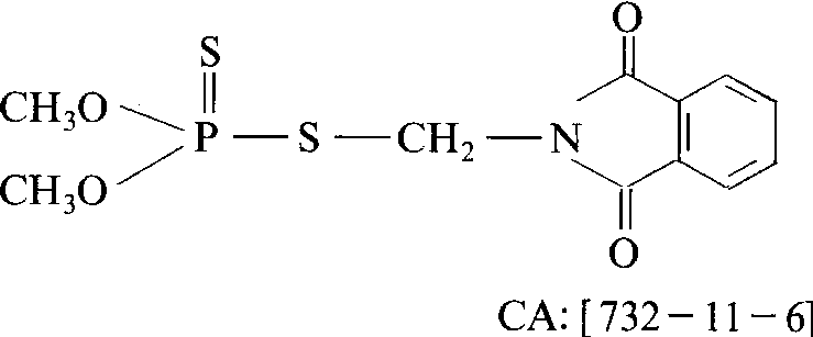 | 释义 | 亚胺硫磷phosmet低毒广谱二硫代磷酸酯类杀虫杀螨剂。化学结构式: