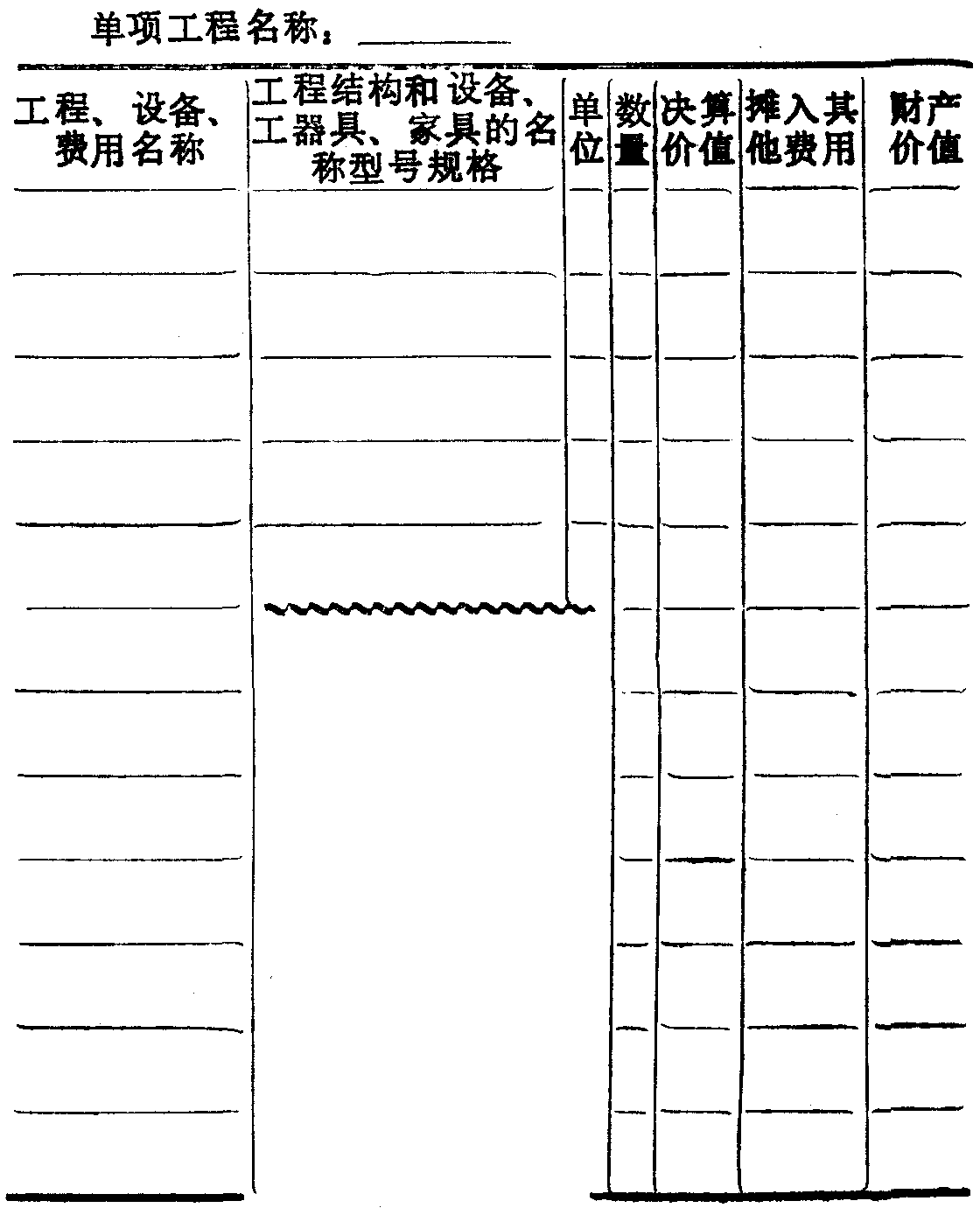 是交付使用固定资产分类明细表,填写时应按建安工程、设备、工器具购量,其他的顺序填写。本表应附单位工程验收交接证书。