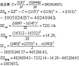 表中P值系按所得F值,由F界值表查得,按α=0.05水准拒绝H0,接受H1,故可认为两台仪器的测定结果有差别: A低于B。此外,亦可看出各受试者的代谢值之间有个体差异,而测试顺序对测定结果无影响。