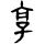亯“享”的异体字。 上一条: 享 下一条: 襐 享亯{}三3557①动能吃。冀鲁官话。山东莒南〖 〗。猪肉这样肥,他也~得下去。②副很。冀鲁官话。山东淄博〖 〗。~大嗹。③名处所。吴语。江苏吴县。1933年《吴县志》:「乡曰~。乡,所也。…今吴俗方言,谓内曰里~,音如向,本乡字也。」浙江象山。   亯xiang8189 〈文〉与“享”同。 亯(xiǎnɡ)“ ,献也。从高省,曰象进孰物形。《孝经》曰:祭则鬼亯之。凡亯之属皆从亯。 ,篆文亯。”(许两切,又普庚切,又许庚切) 太炎先生云:“今俗书之享、亨、烹三字,皆《说文》所无,其正字皆当作亯。”[1]杨树达云:“按亯字隶变作享,又作亨,亨又有许庚切、普庚切两音。《诗·小雅·瓠叶》云:‘幡幡瓠叶,采之亨之。’笺云:‘亨,孰也。’《楚茨》云:‘或剥或亨。’毛传云:‘亨,饪之也。’《周礼·天官·内饔》云:‘掌王及后世子膳羞之割亨煎和之事。’注云:‘亨,煮也。’此三经《释文》并云:‘亨,普庚反。’字又作烹。……故小篆亯之一字,今实分为享、亨、烹三文,亦兼三字之义。”[2] 甲骨文作 ,象建在台基上的宗庙之形,是鬼神享受之地。金文或作 、 、 ,战国包山楚简作 ,睡虎地秦简作 。卜辞中借用为地名。“亯字上古多用为享献、享祭义,如克罍、克盉:‘唯乃明乃心(一说是“鬯”),亯于乃辟。’或为享用义,如《说文》引《孝经·孝治》‘祭则鬼亯之’,今作享,即此义。……战国文字《包山楚简》237有‘亯祭’一词。”[3] 亯部有三个属字。如“ ”字下云:“厚也。从亯,竹声。读若笃。”今用“笃”为笃厚字。 亯 ☚ 亯部 𦎫 ☛ 亯 (xiǎng)獻也。獻是事,上从高省,下象進孰物形,是指事也。“亨、享、烹”三字,皆即此字。 【按】孰,即“熟”,古今字。《説文解字注》:“據玄應書,則‘亯’者籀文也。 小篆作 ,故隸書作‘亨’、作‘享’,小篆之變也。”烹,“亨”的後起本字。 亯 ☚ 明 昌 ☛ 00000310 |