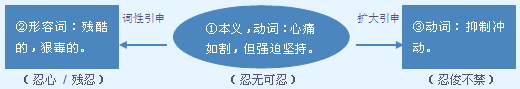 ❶忍耐,忍受。能重叠。常作带宾、带补谓语。宾语可以是非名词性词语。 她~着泪水|~着悲痛|~着饥饿|小张~住笑|队员们再也~不住了|她~了半天才没有让眼泪掉下来|我实在~不下去了|她~不住辛酸的泪水|他头痛难~|你暂时~一~吧! ❷忍心。作谓语,可带宾语。宾语常由非名词性词语充当。 当时,我不~阻挡两个孩子和他们的母亲见面|阿尔贝托见状于心不~。 【词语】 忍让 忍俊不禁 忍气吞声 忍辱负重 忍无可忍