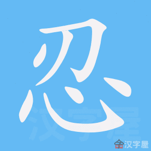 字源解说 刃,既是声旁也是形旁,表示用刀切割。忍,金文 = (刃,用刀切割)+ (心),表示心痛如割。造字本义:比喻心痛如割,但强迫坚持。篆文 承续金文字形。隶书 将篆文的“心” 写成 。 附 文言版《説文解字》:忍,能也。从心,刃聲。 附 白话版《说文解字》:忍,能耐。字形采用“心”作边旁,采用“刃”作声旁。 引申线索