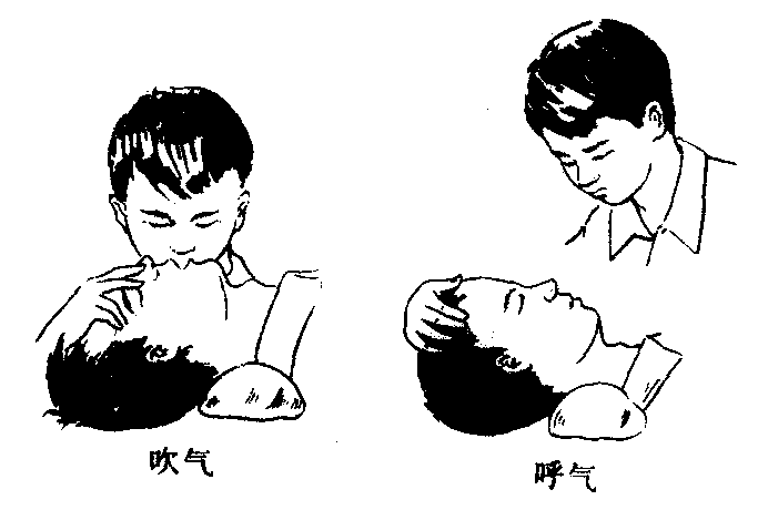 ☚ 蒸气吸入法 胸外心脏按压法 ☛ 人工呼吸法用人工方法,使空气有节律地进入和排出肺脏,达到维持呼吸,解除组织缺氧的目的。常用方法有口对口人工呼吸法、仰卧压胸法、仰卧压背法等。进行人工呼吸前,应先解开伤员领扣,紧身衣服、裤带,清除口腔的泥土、杂草、血块、分泌物或呕吐物等。有假牙者应取出,保持呼吸道通畅。口对口人工呼吸的方法是:将伤员下颌托起,捏住鼻孔,急救者深吸气后,紧贴对准伤员的口,用力将气吹入,看到伤员胸壁扩张后停止吹气,之后迅速离开嘴,如此反复进行,每分钟约20次。如果伤员的口腔紧闭不能撬开时,也可用口对鼻吹气法。 人工呼吸法 人工呼吸法人工呼吸法是运用人工操作手法使失去自主呼吸的病人能继续维持肺脏呼吸的功能。进行人工呼吸前要清除口鼻内异物,保持呼吸道通畅;解开紧束颈胸部的衣服,必要时钳出舌头,以免阻塞气道。 ☚ 病人体位 人工呼吸机使用法 ☛ |