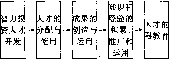 人才的培养、使用和再教育的主客观因果关系构成的各个动态环节。人才循环的各个环节如下图所示: