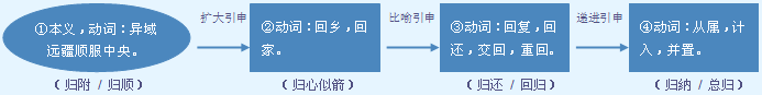 ❶返回;还给、归还;趋向或集中于一个地方。不能重叠。常作带宾谓语,也可带补语。 他~国了|物~原主|水流千里~大海|你把性质相同的问题~成一类。 ❷属于。必作带宾谓语。 这件衣服~妹妹|收入~他,光给你保留虚有权。 由(谁负责)。构成介宾词组作状语。 资料~图书馆的小李解决|一切家务都~他妻子操持。 【辨】 归和由:都可用作介词,都可用来介绍动作或行业的发出者。 区别: ❶使用范围不同。“归”只用于划分职责的范围,“由”不受这种限制,所以,用“归”的句子可以换用“由”。但是不表职责划分时,不能用“归”,只能用“由”。 ❷语体色彩不同。“归”多用于口语;“由”多用于书面语。 【误】 专机归三架战斗机护航,在机场降落。(不表示职责划分,只能用“由”,不能用“归”) 【近】 〈动〉❶返 回 还 〈介〉由 【反】 〈动〉❶往 【词语】 归案 归并 归程 归档 归队 归附 归公 归功 归还 归结 归咎 归拢 归纳 归侨 归属 归顺 归宿 归天 归田 归途 归降 归向 归心 归于 归置 归总 归罪