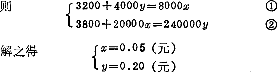 代数分配法建筑企业及所属工业企业里,在各辅助生产单位之间有互相服务的情形下,运用代数中的多元一次联立方程式把辅助生产单位费用分配给各受益部门的一种方法。首先,应根据各辅助生产单位直接发生的费用及相互提供劳务或产品的数量,求解联立方程组,算出单位劳务或产品的成本; 然后,根据各受益单位、部门耗用劳务或产品的数量,进行费用分配。举例说明如下: 假定:某企业有供水和供电两个辅助生产车间,供水车间直接发生的费用为3,200元,供电车间直接发生的费用为3,800元; 供水车间当月供水80,000吨,其中供电车间耗用20,000吨; 供电车间当月供电24,000度,其中供水车间耗用4,000度;其余的水、电都是供给基本生产车间和企业管理部门。 设x为每吨水的成本,y为每度电的成本