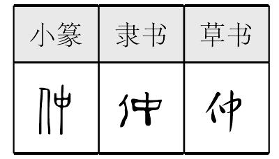 zhònɡ表意,从人从中,中指中间,本义表示兄弟里排行居中的人(一般用于排行第二),引申为居中的、农历每季中的第二个月等。仲 (zhòng)中也。 【按】《釋名》:“仲,中也,位在中也。”引申兄弟排行中第二的位置。 仲 甲 金 篆 隶zhòng【析形】甲骨文、金文字形作“中”。小篆字形增意符人,变作形声字,从人中声。 【释义】《说文》:“中也。”本义为居中的。《逸周书·周月》:“凡四時成歲,有春夏秋冬,各有孟仲季,以名十有二月。”又指兄弟或姐妹中排行第二者。古时兄弟姐妹排行常以伯(孟)、仲、叔、季为序。[伯仲]本指兄弟之间的排名,后转喻为相差很小,难分优劣。[难分伯仲]比喻人或事物不相上下,难分优劣高低。 【shape analysis】In Oracle and Bronze Inscriptions it was中(zhōng)while in Small Seal script it was added the meaningful part 人and changed to the pictophonetic character.The meaningful part is人(rén,people)and the phonetic component is 中(zhōng). 【original meaning】In the middle. |