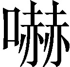 离开;以口拒人。例:嫑在这儿胡说,快点~远!❍ 你倒说的是屁话,滚开!~远!《玉篇》:“,以口拒人谓之。”翟灏《通俗编》:“(嚇)今北方之俗,凡怒人言之不当,辄以一指戳其鼻而作是声。”