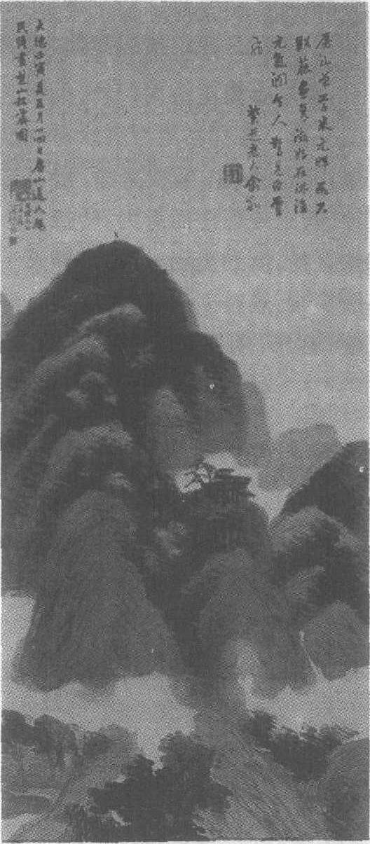 | 释义 | 任颐仿高克恭云山图轴 任颐仿高克恭云山图轴清。任颐(见《任颐三友图轴》条目)绘。纵147.7厘米,横51.4厘米。上海博物馆藏。此幅绘近景山石之上杂木数株,林中屋舍隐现;小河蜿蜒流淌;山腰处云烟环绕,溪水奔泻。远处峰峦突起,郁苍莽莽,一派雨后初霁的山村景色。山石用长披麻皴,明快流畅,而峰峦则先用淡墨勾出轮廓,再以浓墨点皴,苍浑滋润,层次分明。树叶用深浅不同的墨点点簇而成,浓淡得宜。任颐多作花卉、人物,传世山水画不多见。此幅用浓墨横点画米家云山,而山石的造型与墨点的运用,又有胡公寿的风貌。画面上方摹元俞和、高克恭的题诗和钤印,自署:“光绪丙戌(公元1886年)八月浣,山阴任颐。”任颐时年47岁。