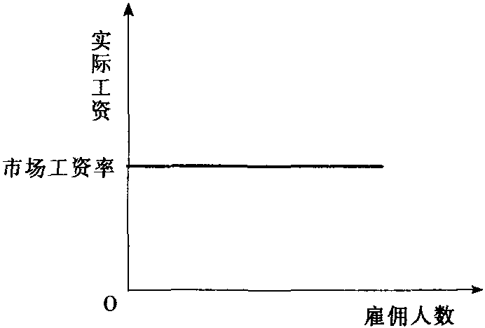 是一条水平线(如图所示)。它表示在完全竞争条件下,企业只能支付市场出清工资率雇用工人,企业不必支付更高的工资就能吸引到足够的工人,也不能支付较低的工资,否则,供给将收缩到零。在劳动力市场买方垄断的情况下,由于市场上只存在一个买者,企业面临的劳动力供给曲线变为市场劳动力供给曲线,它不再是一条水平线,而是一条向上倾斜的曲线,参见“市场劳动力供给曲线”。