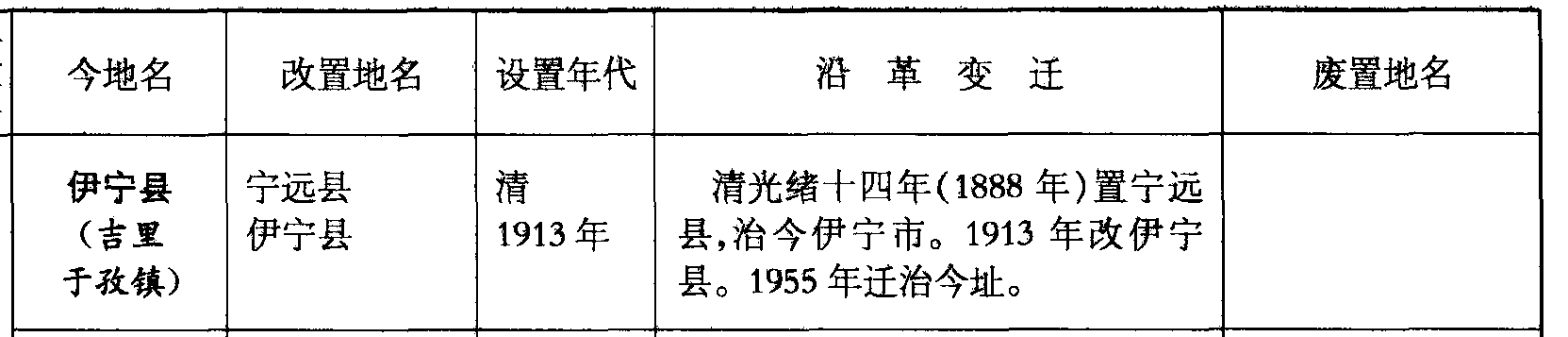 伊宁县(吉里于孜镇)宁远县伊宁县清1913年清光绪十四年(1888年)置宁远县,治今伊宁市。1913年改伊宁县。1955年迁治今址。
