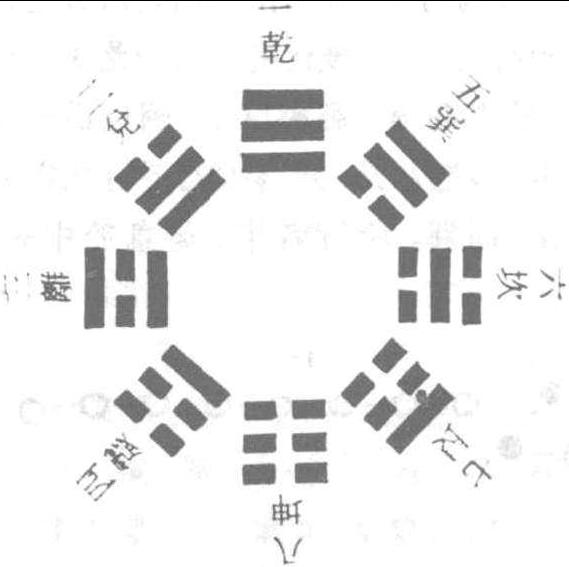 亦稱“先天八卦圖”。八卦方位圖之一種。即乾南、坤北、離東、坎西、震東北、巽西南、艮西北、兑東南。相傳此八卦方位爲伏羲所定,故稱。又有伏羲之《易》爲先天之說,故亦稱。《易·繫辭下》:“古者包犧氏之王天下也,仰則觀象子天,俯則觀法於地,觀鳥獸之文與地之宜,近取諸身,遠取諸物,於是始作八卦。”明·楊向春《皇極經世心易發微·先天八卦圖》:“先天乃對待之體,乾南坤北,爲天地定位,離東坎西,爲水火不相射,兑居東南,艮居西北,爲山澤通氣,震居東北,巽居西南,爲雷風相薄,陰陽老少,各以類合,此伏羲方位之圖,易之本也。”明·楊慎《丹鋁續録·三易》:“《周禮·太卜》:‘掌三《易》之法。’干令升注云:‘伏羲之《易》小成,爲先天;神農之《易》中成,爲中天;黄帝之《易》大成,爲後天。’予按:邵康節之《易》先天、後天,其源出于此。”