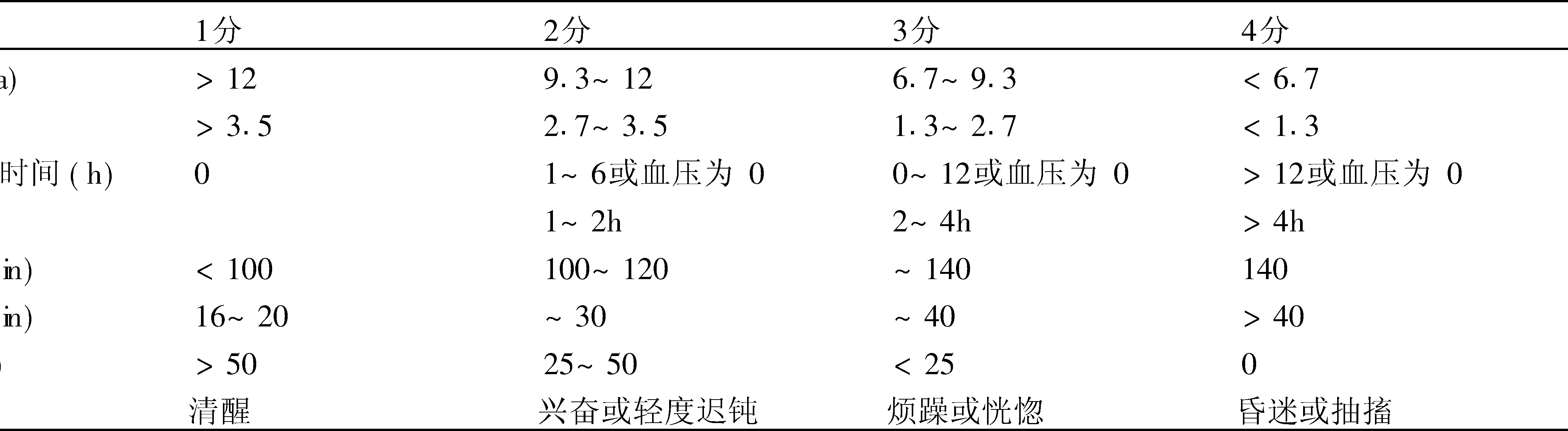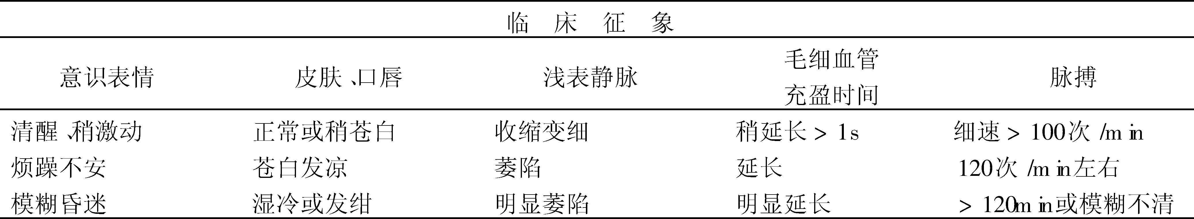 根据休克的症状和体征进行评分,判断休克预后见表1~3。