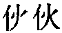 *伙2(夥)huǒ (1) 合作的人;同伴: ~伴|同~。 (2) (~儿)由同伴组成的集体: 合~|散(sàn)~|成群结~。 (3) 一同(干);联手: ~办|~同。 (4) 量词。用于人群: 三个一群,五个一~。