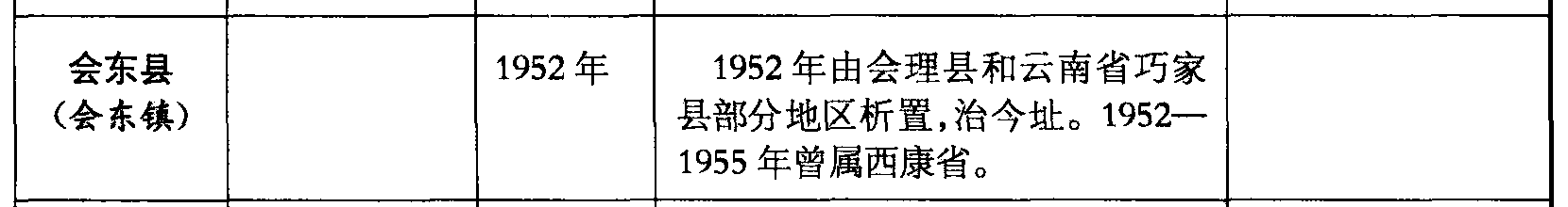 会东县(会东镇)1952年1952年由会理县和云南省巧家县部分地区析置,治今址。1952—1955年曾属西康省。