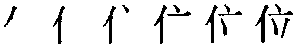 位 *位wèi7画 人部 (1) 所处的地方;位置: 方~|岗~|席~。 (2) 地位,特指帝王诸侯的地位: 名~|职~|即~|在~二十年。 (3) 数码在一个数中所占的位置: 个~|百~|三~数。 (4) 量词。用于指人(含敬意): 各~来宾|您二~来了。 位 ☚ 備 儕 ☛ 位wèi甲骨文和西周金文作立。立字象人正面立在地上,也就是有其位置。金文常说“即立(位)”,即各就各位、王就王位义。战国时有从鬼从立的。小篆隶楷加人旁作位。加人旁,即因立字显不出是人正立形。古音声母演变舌尖|-脱落,如聿律、莴脶(luó,即手指纹)、乐(lè)又读yuè例。韵变即去入通转,如戌(xū)岁(歲)、入内、荸(bí)悖(bèi)例。本指朝廷中君臣的位列。特指皇位。如:即位|在位|篡位。引申指取位,地位。又引申指位置,所在的地方。如:座位。转为量词,表人数。如:各位同志|三位客人。又引申指一个数中,每个数码所占的位置。如:个位|十位。 位★常◎常