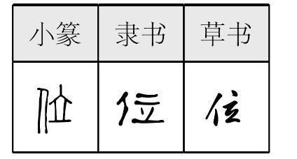 ❹ 高官显位|高爵显位|一步到位 位 甲骨文; 金文; 篆wèi[亻(人,意符)+立(站立,意符)→位(《説文》:“位,列中庭之左右謂之位。從人立。”位,初文與“立”爲一字。“位”本指一個人站立的地方,後泛指“位置”。引申爲職位、地位、座位。又敬辭〈諸位、各位〉。)] 《詩經·小雅·小明》:“靖共爾位,好是正真。”(當心你的職位,多與好人接近。) 位wèi(7画)