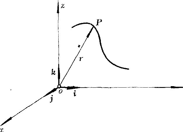 若选用直角坐标系oxyz,质点P的位置矢量r(t)可表示为r(t)=x(t)i+y(t)j+z(t)k。式中x、y、z是质点P在t时刻的坐标,i、j、k分别是沿坐标轴ox、oy、oz方向的单位矢量。