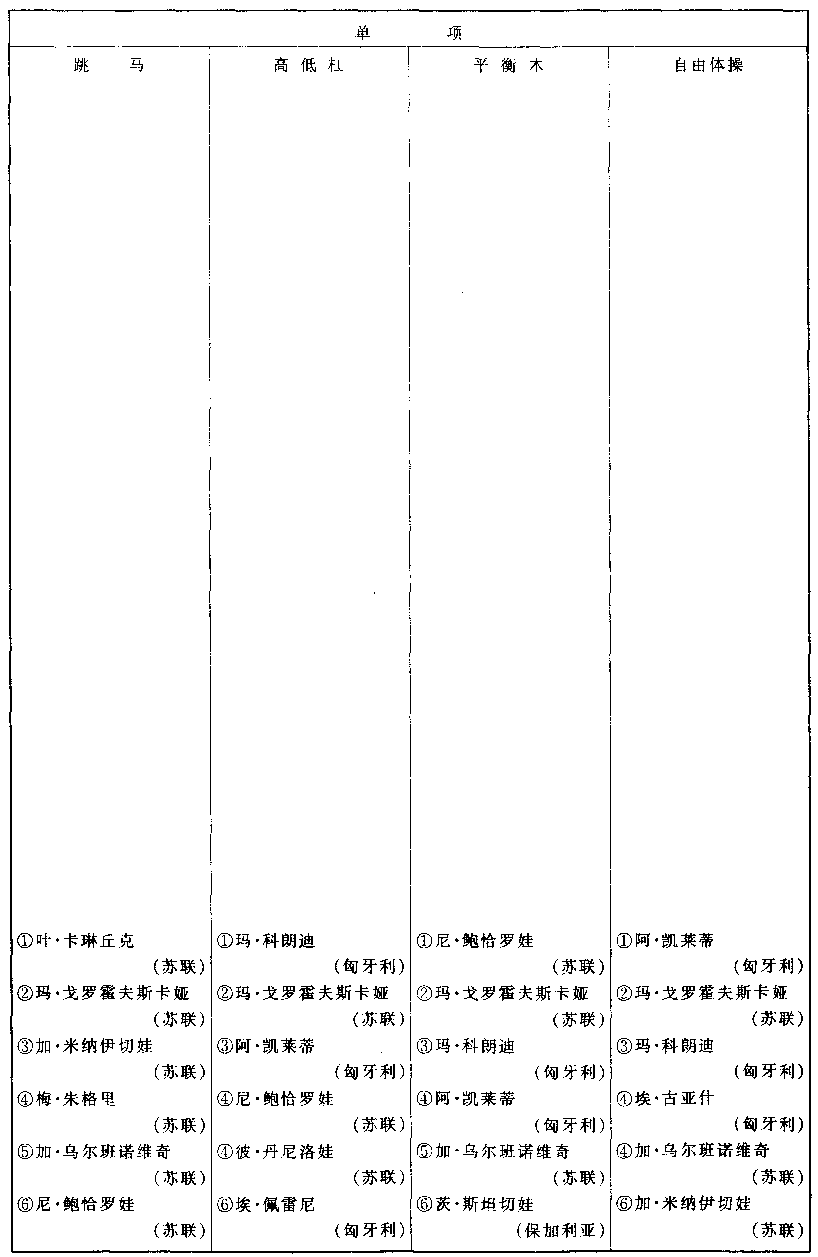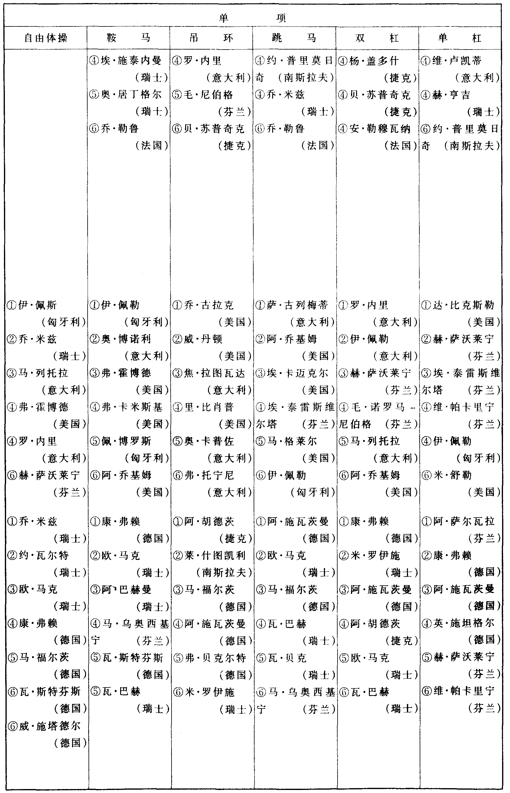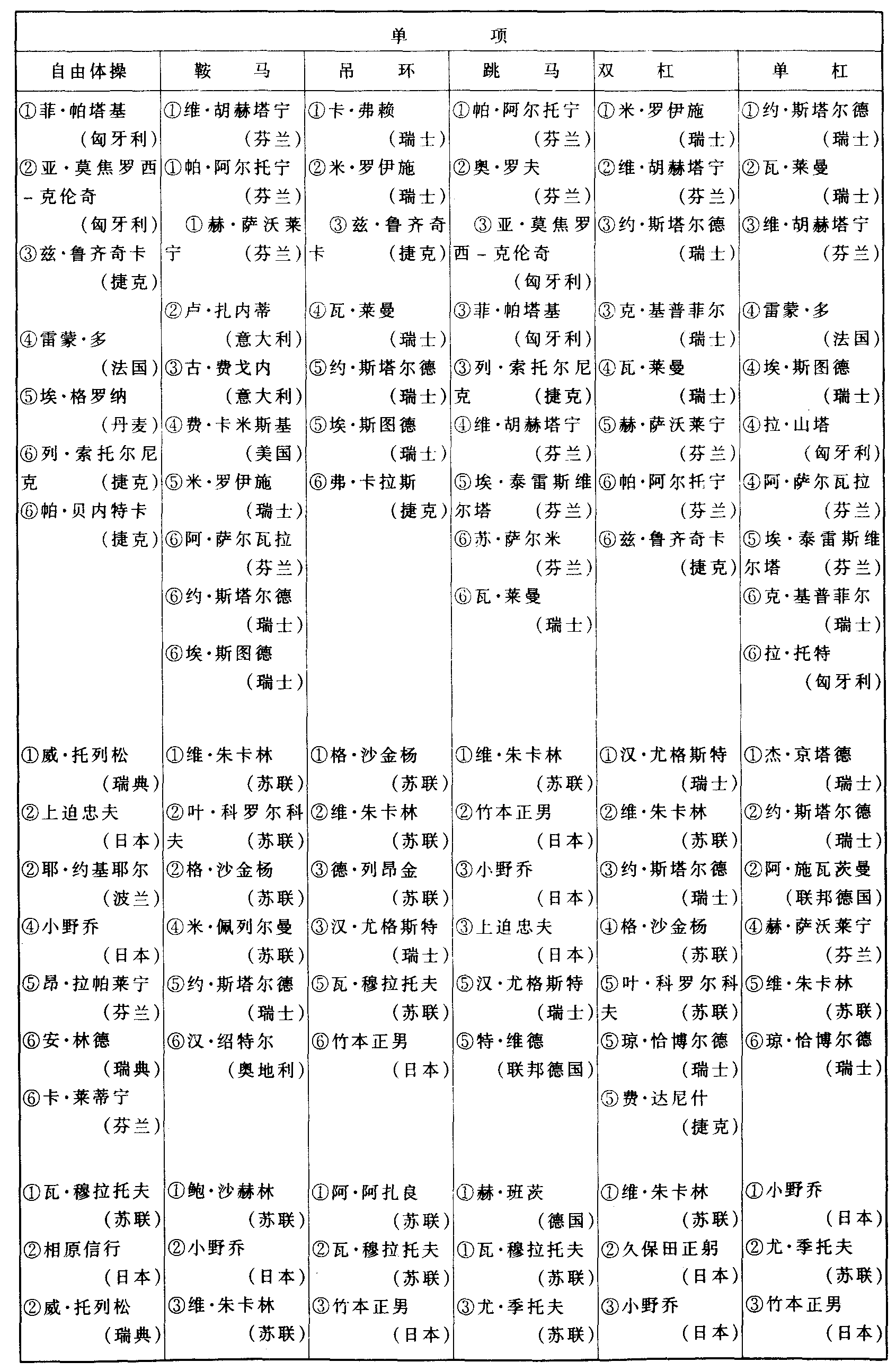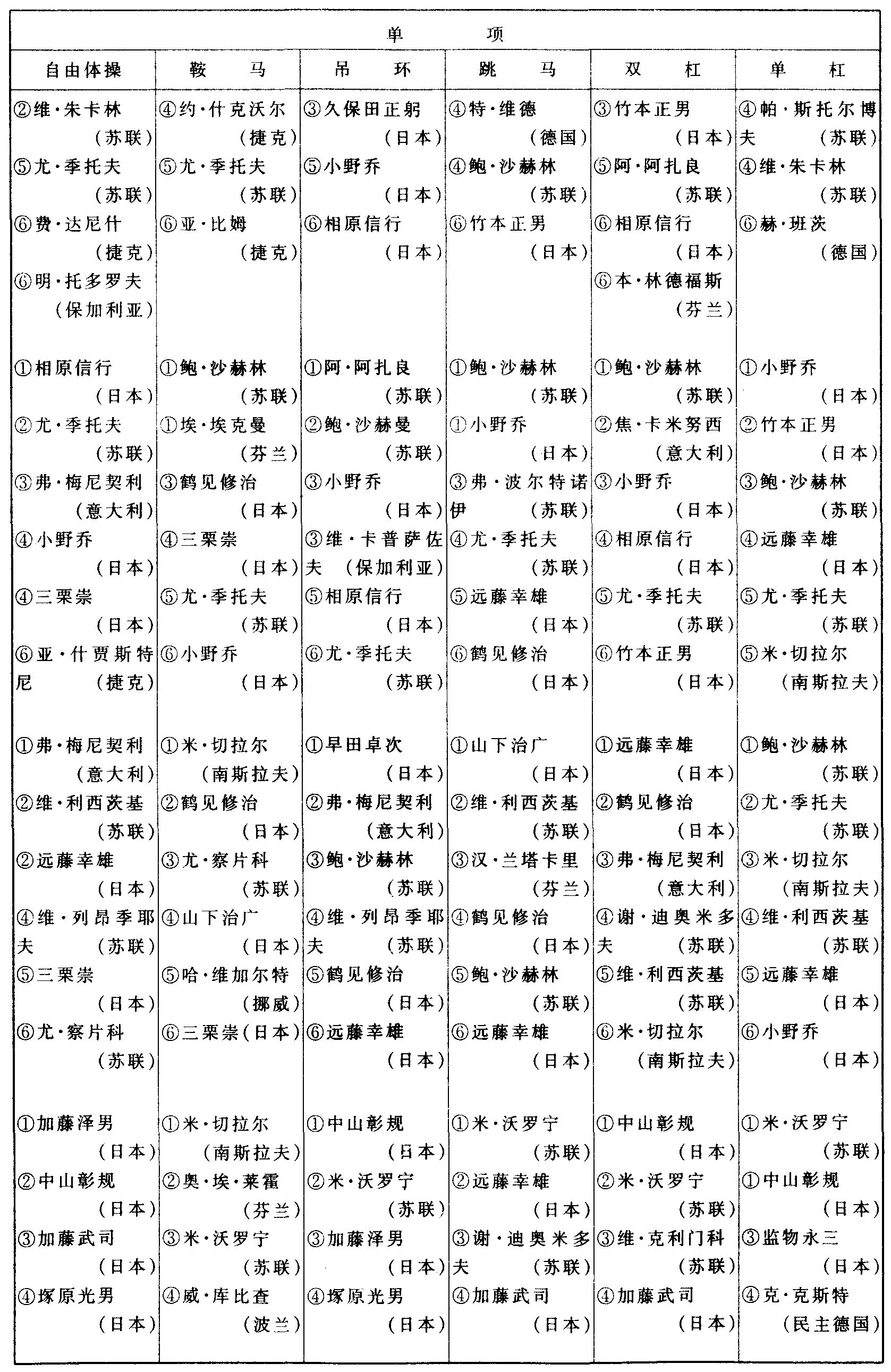 历届奥林匹克运动会体操比赛成绩