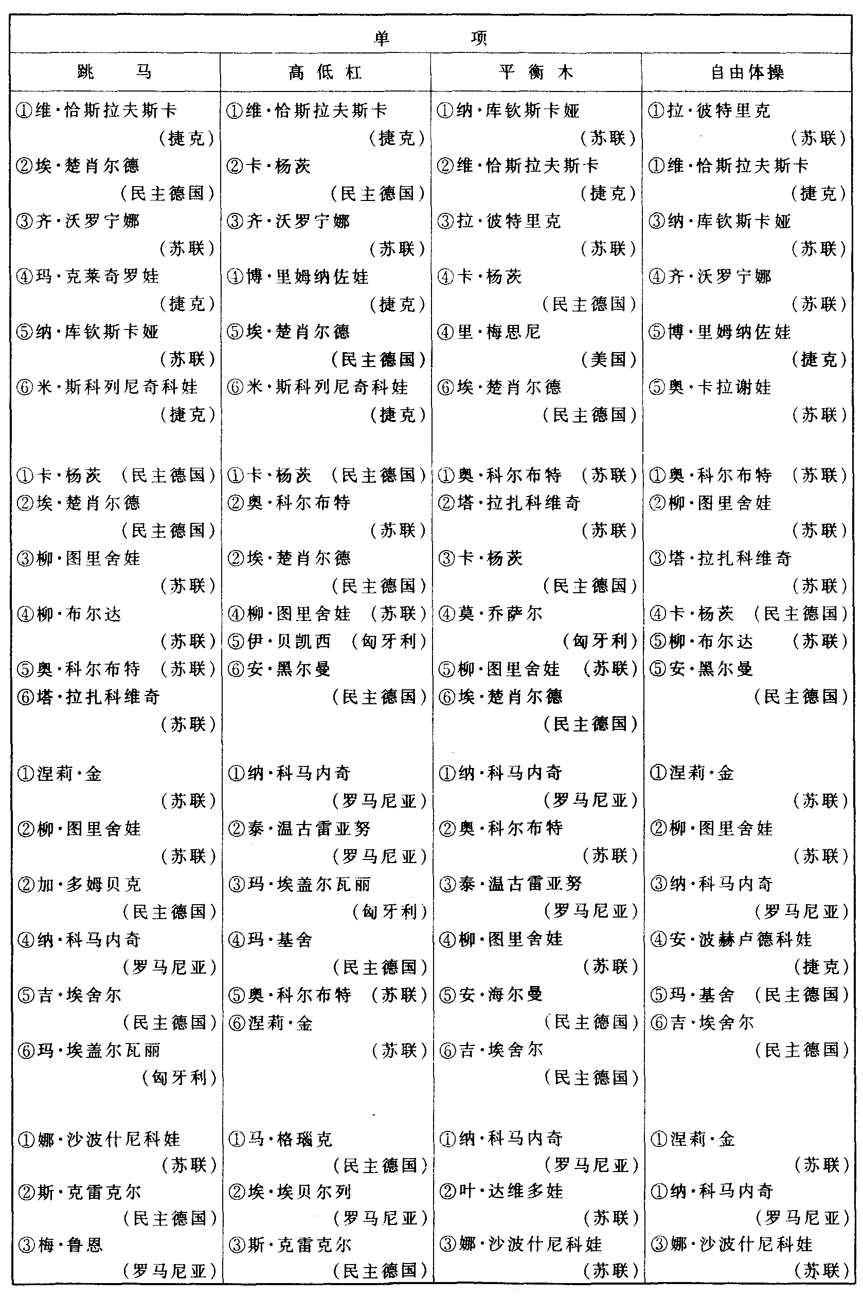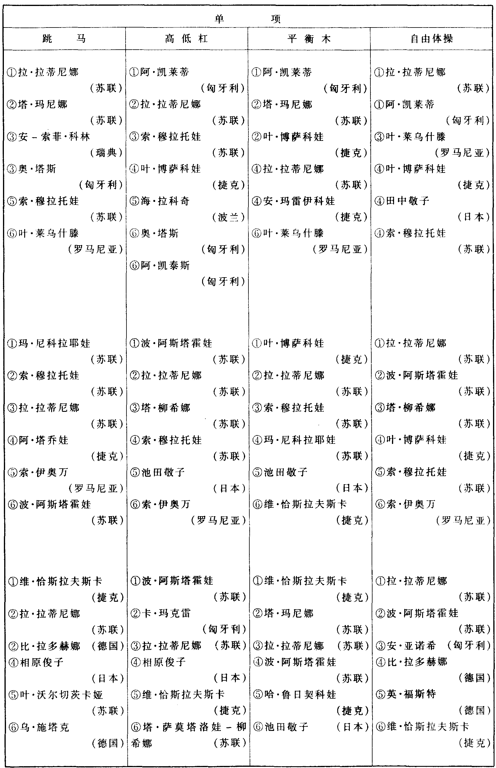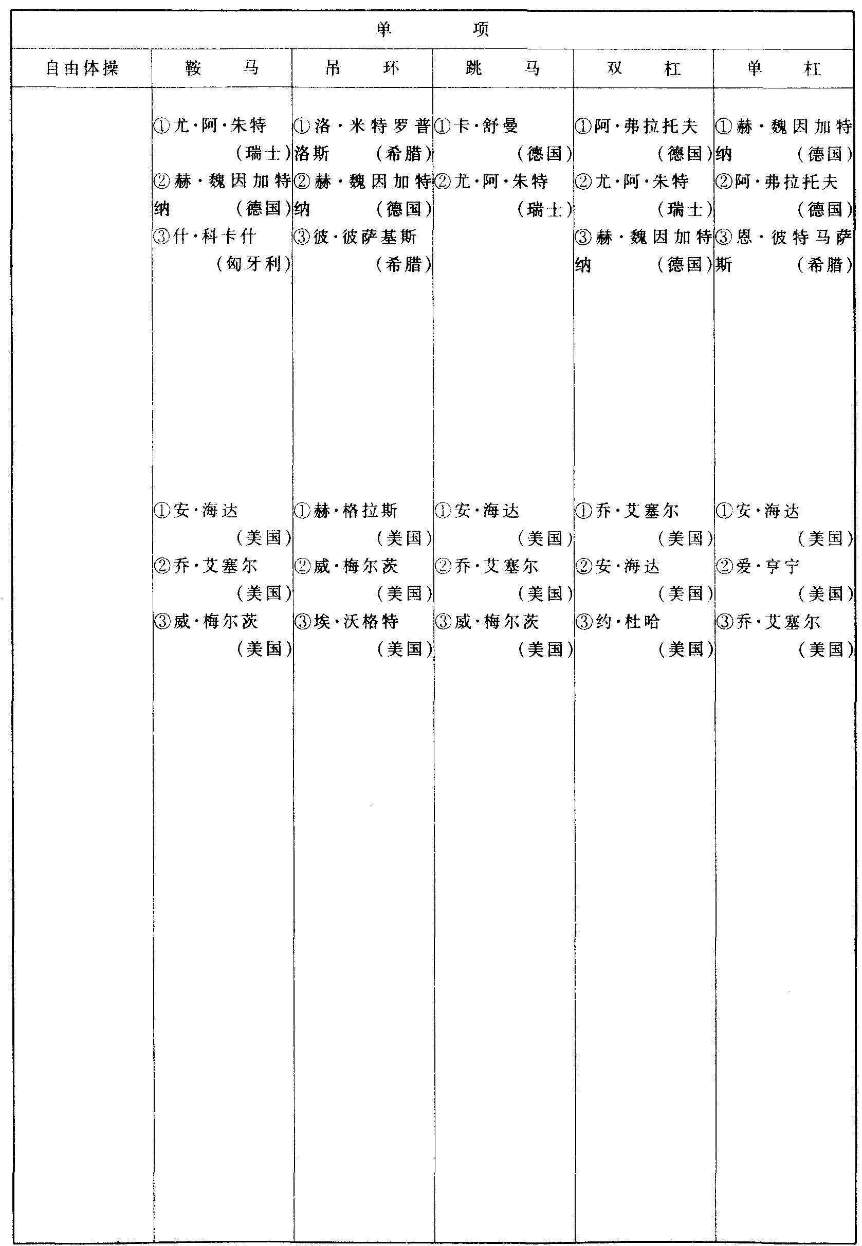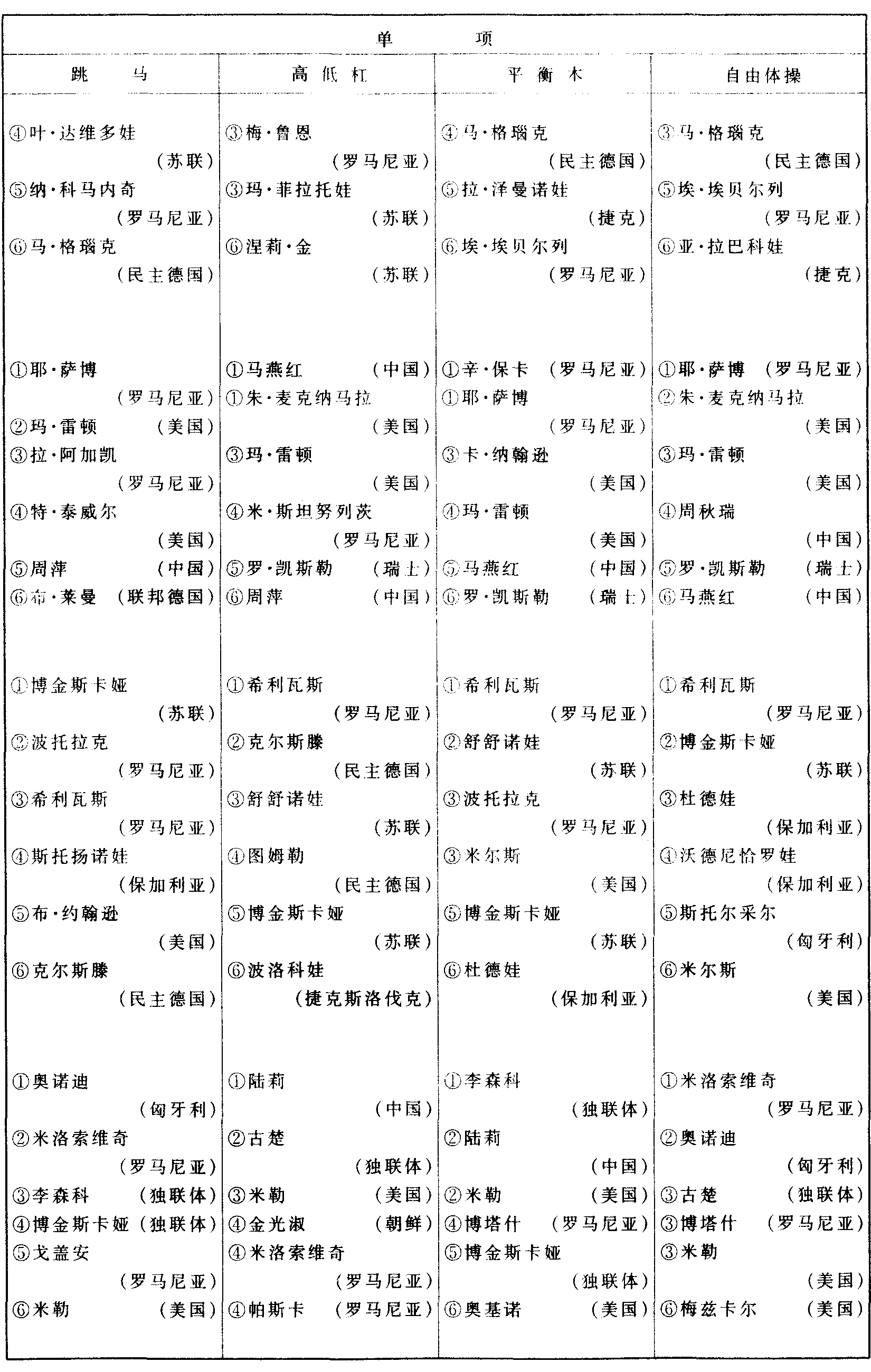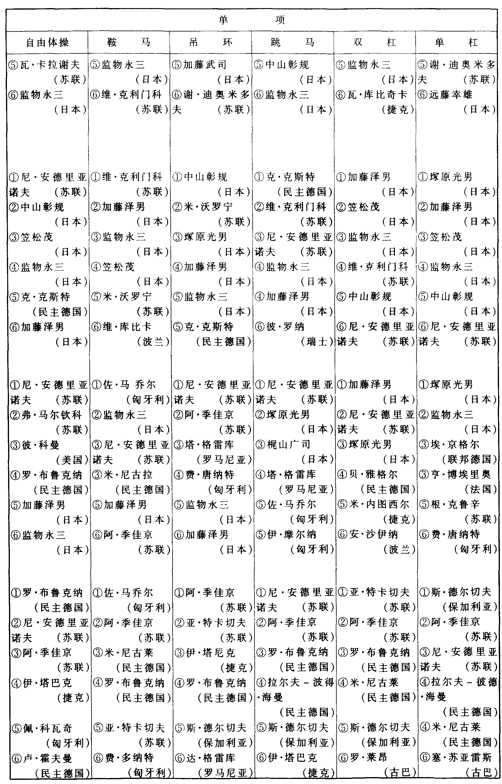 历届奥林匹克运动会体操比赛成绩