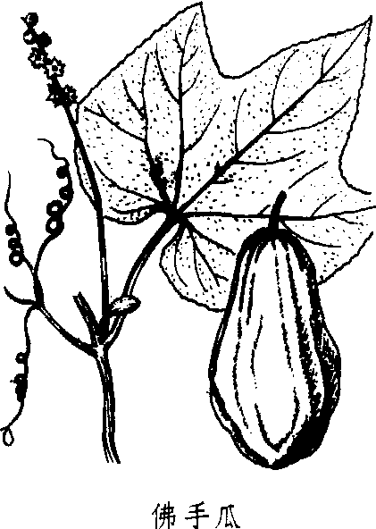 佛手瓜按果实颜色分为白色种和绿色种。白色种果实较小,肉白,腥味淡,产量较低,供生食。 佛手瓜喜温,并耐较高温度,20℃以上温度才能正常生长。果实发育宜稍低温度。地温在5℃以下根枯死,属中光性植物,耐荫蔽。 适于较肥沃和保水力良好的土壤。一般用种子繁殖,也可扦插。春暖栽种,种子(果实)在20~25℃处催芽,播种时把果实2/3埋入穴内。整枝或不整枝,整枝者主蔓约30厘米时摘心,留2条子蔓。子蔓长150厘米时摘心,各留3条孙蔓,棚架引蔓。插条繁殖者于秋冬季霜前采收时,截取地上约30厘米老茎,防寒越冬,翌春截成15~20厘米插条,催芽后插植。生长期间适当追肥和保持土壤湿润。播种至开花结果需80天左右,开花后15~20天采收嫩果,40~50天果实成熟。每株可收200~300个果实,在9~10℃温度和85~90%空气相对湿度下贮藏。开花时用10-3摩尔(M)赤霉酸羊毛脂抹柱头可获无子果。 佛手瓜chayoteSechium edule Swortz.,又称菜肴梨、拳头瓜、洋丝瓜、万年瓜。葫芦科,佛手瓜属。多年生宿根蔓性草本,多作一年生栽培。2n=2x=28。原产墨西哥和西印度群岛。中国南部及山东等省区有栽培。叶掌状,五裂。果短圆锥形,似佛手;皮绿色,肉白色,重300 g左右,口感脆。果中仅有大型种子1粒。喜温暖湿润,不耐霜。为短日照植物,在长日照下不开花。有绿皮和白皮品种。终霜后播种,或先行催芽育苗后栽种。需搭架。嫩瓜炒食或凉拌食用。