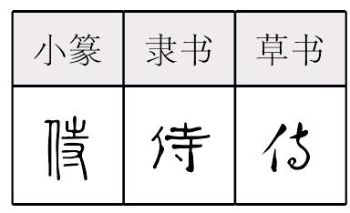 侍shì侍❶與君飲。《禮記·檀弓下》: “平公飲酒,師曠、李調侍。” 鄭玄注: “侍,與君飲也。” ❷猶 “臨”。《禮記·喪服大記》: “大夫之喪,大胥侍之,衆胥是斂。”鄭玄注: “侍猶臨也。” 侍shì〖动词〗 陪从,侍奉(11)。《里革断罟匡君》:师存侍,曰:“藏罟不如置里革于侧之不忘也。”——乐师存在一旁陪从[鲁宣公],说:“收藏鱼网,还不如留里革在身旁,更不容易忘记啊。”《杜蒉扬觯》:平公饮酒,师旷、李调侍。——晋平公饮酒,师旷和李调陪从在一旁。《亲政篇》:洪武中如宋濂、刘基,永乐以来如杨士奇、杨荣等,日侍左右。——洪武年间,像宋濂、刘基,永乐以来像杨士奇、杨荣等,每天侍奉在皇帝左右。 侍shì❶ 在尊长身边陪着。《鸿门宴》:“沛公北向坐,张良西向~。”宋濂《送东阳马生序》:“余立~左右,援疑质理,俯身倾耳以听。” ❷ 服侍,伺候。《左传·僖公二十二年》:“寡君之使婢子~执巾栉,以固子也。”陈琳《饮马长城窟行》:“善~新姑嫜,时时念我故夫子。” ❸ 进献,进言。《史记·赵世家》:“明日,荀欣~以选练举贤,任官使能。” 侍 侍陪从。旧时翰林对翰林院前辈的自称。林则徐《与梁章鉅》:“然阁下年来情况~所深知。”樊增祥《与缪荃孙》:“~就事论事,实无刻责之意。”张元济《与王同愈》:“~一病逾月,幸托庇就痊。” ☚ 仆 走 ☛ 侍*shiCACC ❶侍奉;伺候:服~/~立/~候/~侧。 ❷伺候人的人:近~/~从/女~/男~。 陪侍 陪侍陪待 陪辅 陪列 陪侍酒席:陪酒 宴饮时陪侍:侍 陪从或伺候尊长、主人:侍 陪侍警卫皇帝:陪跸 陪銮 在旁边陪候:侍立 陪侍左右:侍侧 环绕陪侍:环侍(~左右) 搀扶陪侍:扶侍 (陪伴服侍:陪侍) ☚ 侍候 爱护2 ☛