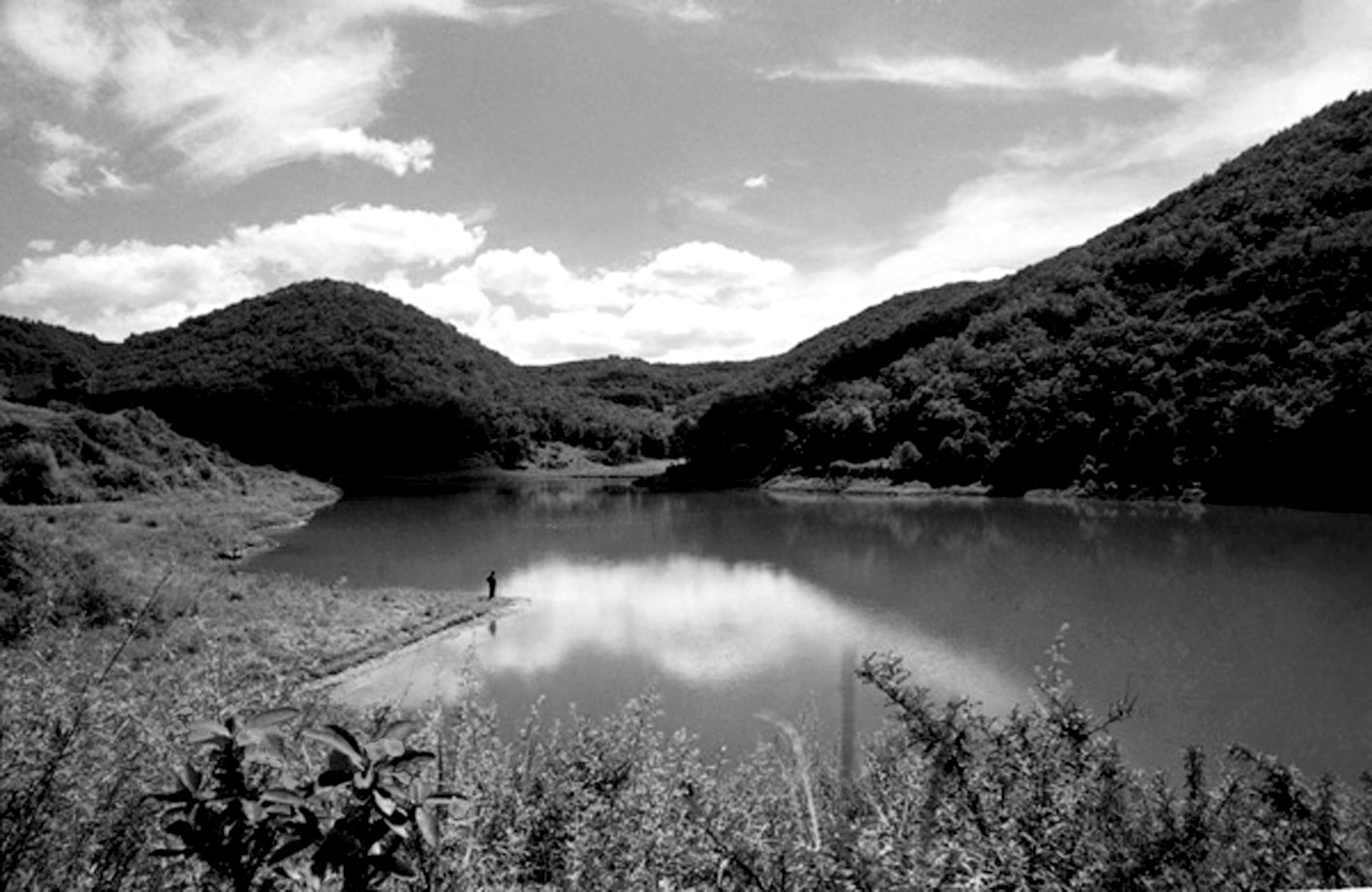 位于彬县县城南33公里底店乡牛堡村。其水通入水帘河,再注入泾河,海拔1440米。原为山沟,相对落差很大,由于山体滑坡堵塞水路形成天然聚湫。水面面积370亩,是陕西较大的天然淡水湖。盛水期和枯水期变化不大。水深约13米,最深处18米。控制流域面积25平方公里,植被覆盖率95%,总库容166万立方米。1964年和1985年相继投放鱼种,已成为彬县较大的养鱼场之一。民间传说侍郎池形成于明代,县志记载形成于清代。