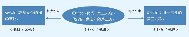 | 释义 | ![]() ❶称自己和对方以外的某个男性,或指性别不明及不必区分性别的第三者单数;第三人称代词,单数。 a.作主语。 ~是先进工作者|~提出了一种新的理论。 b.作宾语。 我们要学习~|没看清~,不知是男是女。 c.作定语。 这是~的书|~父亲是眼科大夫。 ❷虚指,没有实在意义。多用于口语。用在单音节动词和宾语或补语之间。作宾语,但无指代作用。具有助词性质。 今年再盖~几间房,买~几头猪,这日子就更红火了|再干~一天,任务就完成了|咱俩今晚喝~个痛快。 ❸别的,另外的(方面、事情、地方等)。 a.作定语。 这个人只想安安稳稳过日子,毫无~求|这些钱存起来,留作~用。 b.作状语。 此人早已~去|该同志已经~调。 【辨】 (一)他和她、它:在书面上,男性或性别不明以及没有必要区分性别时用“他”,如“他来了”“一个人当他取得成绩时,要防止骄傲”;女性用“她”,对祖国、党旗、国旗、故乡等表示敬爱或珍爱的事物时也可用“她”称呼;事物用“它”。 (二)他和他们:❶“他”指第三人称单数;“他们”指第三人称复数。 ❷“他”指男性单数,也可指性别不明或不必区分性别的人;“他们”指男性复数,也可指兼有男性、女性的复数。 【误】 ❶这人烫着卷发,从背后根本看不清他(她)是男是女。(性别不明时,用“他”就可以称代了,不必再加“她”)❷听着他们和她们的欢笑声,老奶奶自己也仿佛回到了青年时代。(兼指有男有女的第三人称复数用“他们”就可以了,不必再加上“和她们”) 【词语】 他们 他人 他日 他杀 他乡 字源解说 它,既是声旁也是形旁,指代人类以外的事物。佗,古鈢字形 附 文言版《説文解字》: 佗,負荷也。从人,它聲。 附 白话版《说文解字》: 佗,以背驼物。字形采用“人”作边旁,“它”作声旁。 引申线索 ![]() 【字族索引】 他 也 【同音字】 tā |