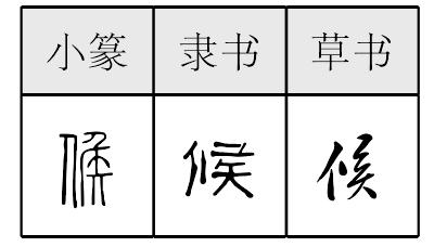 hòu形声,小篆从人,矦(hóu)声,隶定为“候”,音符字形稍变。本义为观察、守望,引申为看望、等待、时令、事物变化中的情况或程度等。