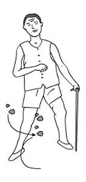 | 释义 | 偏瘫性步态 偏瘫性步态hemiplegic gait又称“划圈步态”、“圆规步态”。偏瘫病人行走时的步伐状态。由于患侧膝关节伸直,脚向跖侧屈曲而内翻,为避免脚尖拖地,故在行走时先将下肢外展而后内收,造成如同用脚划圈。