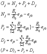 若:Gj——j区域在计算期内的经济增长总量(或GNP、工业生产总值等);