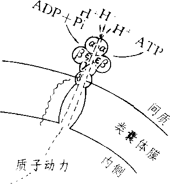 偶联因子coupling factor催化与电子传递相偶联的磷酸化反应的ATP酶复合体(CF0-CF1或F0-F1)中起主要功能的亲水蛋白质(CF1或F1)。位于类囊体膜上催化光合磷酸化与位于线粒体膜上催化氧化磷酸化的ATP酶复合体类似。埋于膜内的部分称为CF0或F0,位于类囊体膜和线粒体表面的部分分别称CF1和F1。CF1和F1都是由α、β、γ、δ和ε5种亚单位组成的。不同亚单位各具特殊的功能。不同植物材料的CF1所含亚单位不尽相同。按米切尔(P.Mitchell)化学渗透学说的观点,光合磷酸化的推动力是光合电子传递过程所形成的质子驱动力,通过偶联因子的作用从而完成光合磷酸化反应。