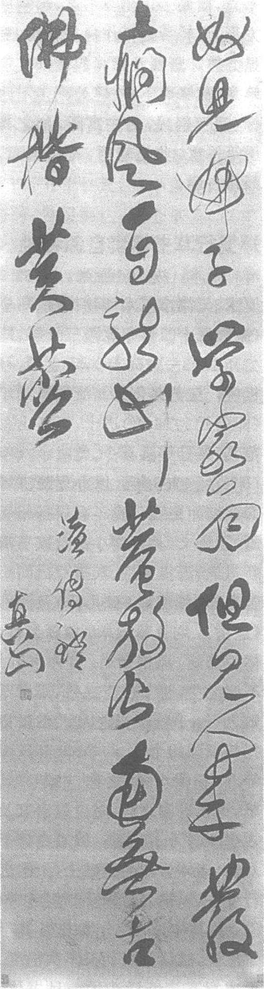 | 释义 | 傅山草书读传镫诗轴 傅山草书读传镫诗轴清。绫本。纵179厘米,横48.5厘米。天津市艺术博物馆藏。傅山(见《傅山草书诗轴》条目)书。此幅草书:“奴儿婢子学家翁,但见人来发痫风。一自龙山庵放火,南无古佛楷芙蓉。”下款署“读传镫真山”。计3行33字。书体流宕自如,体势连绵,提按有致,轻重适中,圆润劲健,可谓:“笔如风雨气如虹,积健为雄见此翁。”体现了傅山高度的艺术造诣。