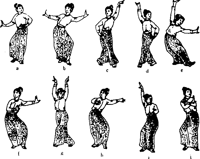 | 释义 | 傣族舞的基本手位 傣族舞的基本手位Daizuwu de jiben shouwei低展翅: 有立掌和横掌两种手形 (图a)。平展翅(图b)。提腕高展翅 (图c)。托式掌高展翅 (图d)。顺展翅(图e)。侧展翅 (立式掌) (图f)。双合翅 (提腕掌)(图g)。平合抱翅 (图h)。高合抱翅 (图i)。双抱翅(图j)。