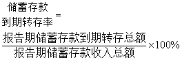 | 释义 | 储蓄存款到期转存率统计报告期储蓄存款收入中到期转存款所占比率的统计。它是分析银行定期储蓄业务变化的重要指标,可以反映出储蓄存款的稳定程度,转存率越高表明储蓄存款越稳定。计算公式: