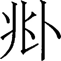 zhào象形,《说文》古文、小篆象灼龟甲或兽骨所出现的裂纹形,隶定为“兆”。本义为卜兆,占卜时获得的兆象,用以预测吉凶、祸福。(一说为“涉”的同源分化字。)引申为预兆、预示,假借为极多,由此引申为数词,古代指一万亿,现在指一百万。 【辨析】 以“兆”作音符构成的形声字一般韵母为ɑo,但声调和声母不同。cháo:晁∣diào:铫∣tiāo:挑、佻、祧∣tiǎo:窕、挑∣tiào:跳、眺∣táo:逃、桃、洮、鼗∣yáo:姚、珧。兆 ; (zhào)灼龜坼也。从卜, 象形。古文 与小篆同。 葢灼龜之狀,是全體指事字。 【按】坼,音chè,裂开。兆的本義是灼燒龜甲裂開的紋理,引申指徵兆。 注释:右以會意定指事者,凡四十文。○不入會意兼指事者,彼以意爲主而以事成之,此以事爲主而以意成之。 兆 篆 隶zhào【析形】《说文》古文 字形像龟甲受灼所产生的裂痕,小篆字形增意符“卜”。隶、楷字形从古文而变。 【释义】《说文》:“ ,灼龟坼也。兆,古文 省。”本义指古人占卜时烧灼甲骨所呈现的预示吉凶的裂纹。兆是判断吉凶的依据,也即吉凶的提前显示,所以引申指一切事情发生前的迹象,如[征兆]、[预兆]等;又引申为发端、显现。由裂纹的形象,引申为形状、界域等义。[瑞雪兆丰年]谓冬天大雪是来年丰收的预兆。[兆域]墓地四周的疆界,亦以称墓地。 【shape analysis】The ancient character in 印Shuo Wen Jie Zi正 was shaped like the cracks on calcinated tortoise shell.In Small Seal script,it was added with a meaning part 卜(bǔ,divine)while the form followed the ancient form in Official script and Regular script. 【original meaning】The cracks on calcinated tortoise shell for predicting good or ill luck.兆 is the basis for predicting. 兆 *兆diaw[甲骨] [金文] [小篆]《說文》: ,分也。 从重八。孝經說曰: 故上下有別。(二篇上) 東西龜裂之紋。 ☚ 㫐 頫 ☛ 00000683 |