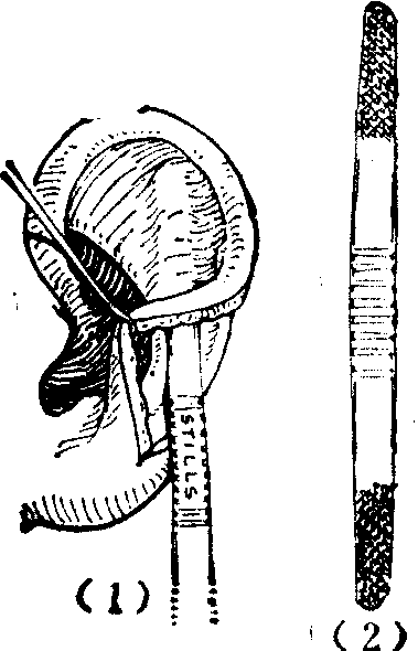 图6 软骨管法 (5)软骨擦刮法。此法以两面有软骨膜包裹的软骨,如一面除去软骨膜时,软骨即向仍保有软骨膜的一面自然卷拢的特性为基础。手术操作为经耳后的切口,向耳廓的前侧进行广泛的皮下剥离,然后用特制的擦刮器沿对耳轮及其后脚的应在部位进行擦刮,以磨除局部的软骨膜和软骨浅层,即可见软骨自然卷曲向前凸出形成圆钝的隆起(图7)。此法手术涉及的范围广,耳前侧的皮下广泛剥离不易操作,技术较复杂,故未得普遍应用。