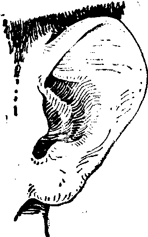| 释义 | 先天性贝壳状耳 先天性贝壳状耳贝壳状耳属于先天发育畸形。除包含招风耳畸形所具有的对耳轮及其后脚的发育不良特征外,而且耳轮没有正常的卷曲形态,或很不明显。因此,耳廓失去应由对耳轮、对耳轮脚、耳轮、三角窝和舟状窝等所构成的凸凹回转外形,而呈一片平整的弧面薄壳,状如贝壳 (图1)。