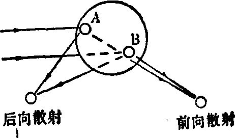 图2 微粒尺寸接近波长时、微粒内A、B两点散射光,前向相加,后向相减