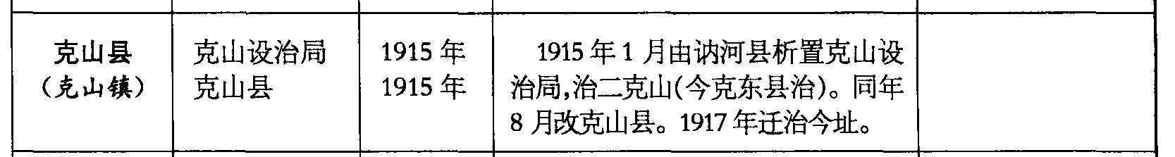 克山县(克山镇)克山设治局克山县1915年1915年1915年1月由讷河县析置克山设治局,治二克山(今克东县治)。同年8月改克山县。1917年迁治今址。