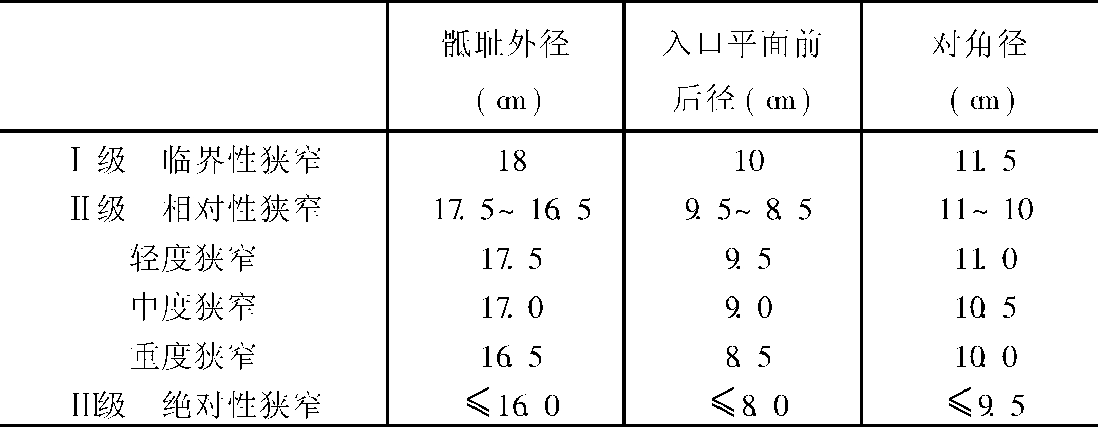| 释义 | 入口平面 入口平面plane of entrance入口平面面积正常值为145cm2 。计算式:入口平面面积(cm2)=入口前后径×入口横径。临界性狭窄:面积为正常值的70%~85%。重度狭窄:面积为正常值的70%以下。其平面狭窄的分级如下: 入口平面狭窄的分级 ☚ 骨盆评分 中骨盆面积 ☛ |