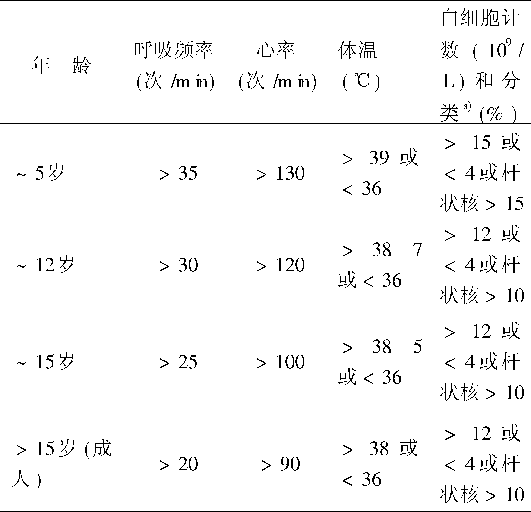 | 释义 | 全身炎症反应综合征 全身炎症反应综合征systemic inflammatory reaction syndrome,SIRS因炎症刺激而引起机体一系列的病理生理反应,包括体温升高、呼吸心率加快和外周血白细胞升高等表现的一种综合征。Hayden 1996年提出SIRS诊断标准(见表)。 SIRS的诊断标准 续表